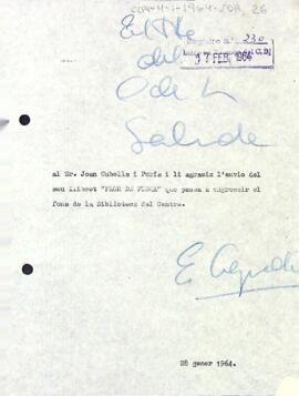 Enric Aguadé agraeix a Joan Cubells el donatiu d'un exemplar de "Flor de pedra". Data del document: 28-01-1964
