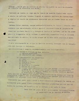 Informe de les bases de la Secció de Música que aquesta presenta al consell de pedagogia del Centre de Lectura. Data del document: 10-07-1957