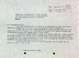 Enric Aguadé Parés felicita a Francisco Labadie Otermin pel seu nou càrrec com a president del Consell d'Administració de l'Instituto Nacional de Previsión. Data del document: 03-07-1957