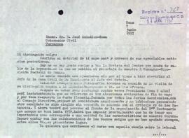 Enric Aguadé Parés envia a José González-Sama un exemplar de la Revista del Centre de Lectura, i parla sobre diversos temes, com la seva reelecció com a president del Centre de Lectura, o la preparació dels actes del Centenari de l'entitat. Data del document: 07-06-1957