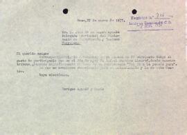 Enric Aguadé Parés informa a José Mª de March Ayuela de la celebració de la conferència de Rafael Morales, "Del 98 a la poesía pura". Data del document: 27-03-1957