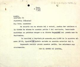 Carta dirigida a MAPESA amb relació a les característiques de la comanda de sobres.