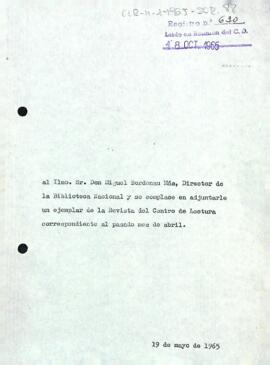 Es comunica a Miquel Bordonau el donatiu d'un exemplar de la Revista del Centre de Lectura.