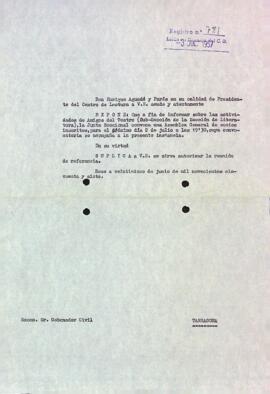 Carta al Governador Civil de Tarragona