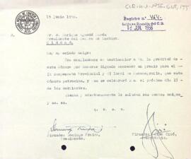 Carta d'agraïment de la Cambra Oficial de Comerç de Reus al Centre de Lectura