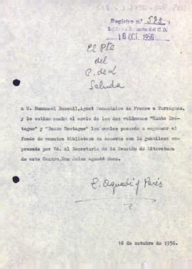 Enric Aguadé agraeix a Emmanuel Buscail el donatiu de dues obres "Haute Bretagne" i "Basse Bretagne".