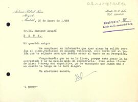 Antonio Pedrol comunia a Enric Aguadé l'enviament del piano, però sense clau per haver-se extraviat. Pròximament en rebrà una, que ja ha encarregat.