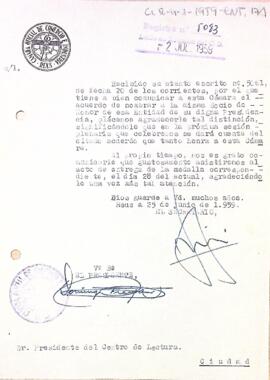 Carta de la Cambra Oficial de Comerç de Reus al president del Centre de Lectura