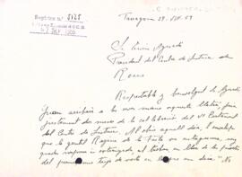 Carta de Dolors Ferré Florit al president del Centre de Lectura