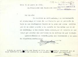 Carta de Domingo Lara al president del Centre de Lectura