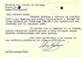 Sol·licitud de la renovació de la subscripció de la Revista del Centre de Lectura.
