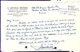Carta de Joan Savall Romeu al president del Centre de Lectura