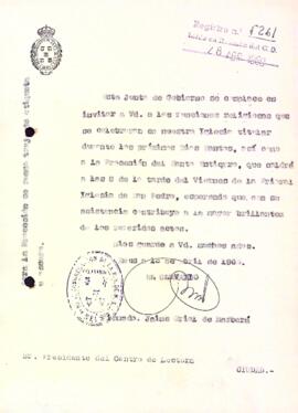 Jaume Oriol de Barberà, de la reial Congregació de la Puríssima Sang, convida al president del Centre de Lectura als actes de Setmana Santa. Data del document: 13-04-1960