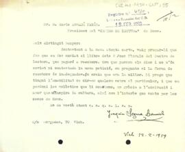 Joaquim Segura escriu al president sol·licitant novament un exemplar del llibre del V Certamen literari.