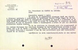 Josep Iglésies informa al Centre de Lectura de la propera visita de 32 professors alemanys a l'entitat. Data del document: 12-08-1957