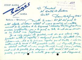 Carta de Josep Maria Baiges i Jansà la president del Centre de Lectura