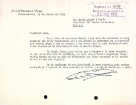 Carta de Juan Vilella Puig al president del Centre de Lectura