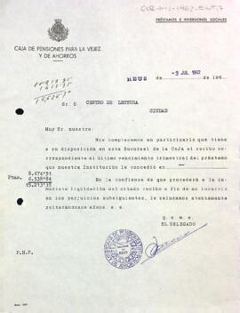 El delegat de l'entitat a Reus informa que ja disposen del rebut corresponent a l'últim venciment trimestral del préstec sol·licitat.