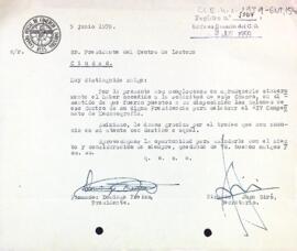 Carta de la Cambra Oficial de Comerç de Reus al president del Centre de Lectura