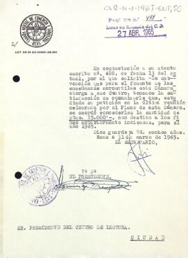 Carta de la Cambra Oficial de Comerç de Reus al Centre de Lectura