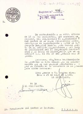 Carta de la Cambra Oficial de Comerç de Reus al Centre de Lectura