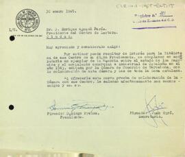 Carta de la Cambra Oficial de Comerç de Reus al Centre de Lectura