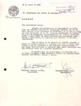 Carta de la Cambra Oficial de Comerç de Reus al Centre de Lectura