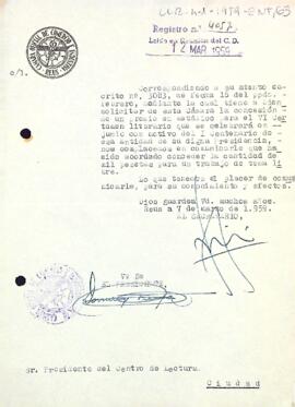 Carta de la Cambra Oficial de Comerç de Reus al president del Centre de Lectura