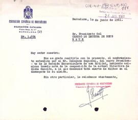 Carta de la delegació catalana de la Federació Española de Montañismo al president del Centre de Lectura