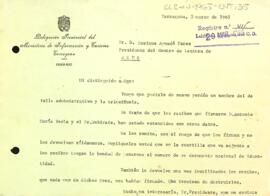 Unitat documental simple ENT, 35 - Carta de la delegació provincial del ministeri d'Informació i Turisme de Tarragona al president del Centre de Lectura