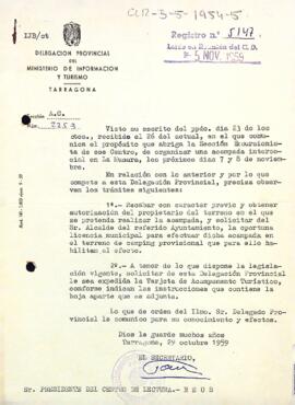 Item 5 - Carta de la delegació provincial d'informació i turisme de Tarragona del ministeri d'informació i turisme al president del Centre de Lectura