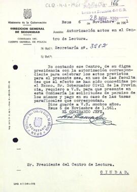 Carta de la comissió del cos de general de policia de la direcció general de seguretat al president del Centre de Lectura