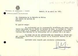 Carta de la direcció general d'informació al president del Centre de Lectura