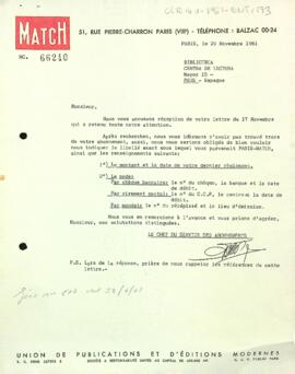 Carta de la revista Paris Match