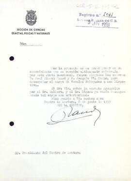 Carta de la Secció de ciències exactes, físiques i naturals al president del Centre de Lectura