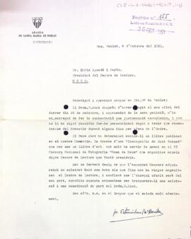 Carta de l'Abadia de Poblet al president del Centre de Lectura