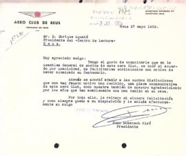 Carta de l'Aeroclub de Reus al president del Centre de Lectura