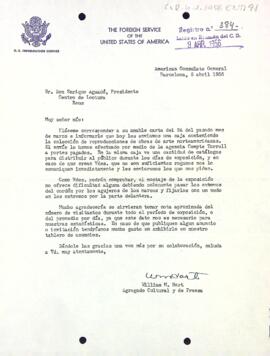 Carta de l'American Consulate General de Barcelona al president del Centre de Lectura