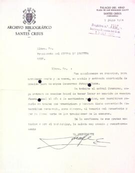 L'Arxiu Bibliogràfic de Santes Creus demana al Centre de Lectura un trofeu per al seu Concurs Fotogràfic. Data del document: 07-07-1960