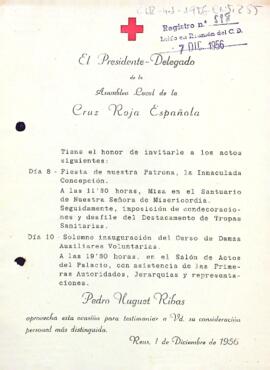 Pere Huguet convida al president als actes de la festa de la Patrona, Immaculada Concepció, i a la inauguració del curs de dames auxiliars voluntàries.