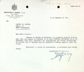 Unitat documental simple ENT, 16 - Carta de l'Editorial Montaner i Simón al president del Centre de Lectura