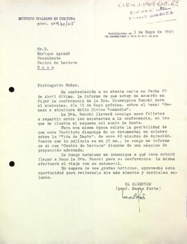 Carta de l'Istituto Italiano di Cultura al president del Centre de Lectura