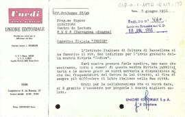 Carta de l'Istituto Italiano di Cultura di Barcelona informant de l'enviament de la revista Índice