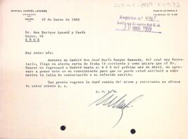 Manuel Cortés comunica a Enric Aguadé que José M. Sunyer Basseda es troba absent i per aquest motiu no ha respost la seva carta.