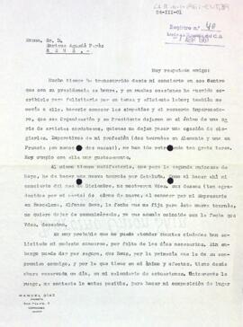 Carta de Manuel Díaz-Criado al president del Centre de Lectura