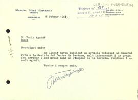 Carta de Manuel Miró Esplugas al president del Centre de Lectura