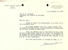 Miguel Cachot respon la carta d'Enric Aguadé tot comunicant un possible error en el volant d'admissió a soci.