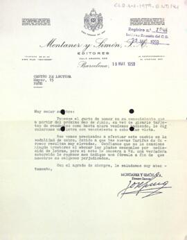 Carta de Montaner y Simón editores al Centre de Lectura