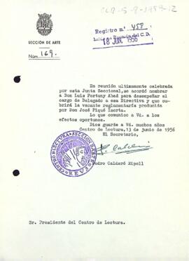 Pere Calderó informa Enric Aguadé que la junta seccional ha elegit Lluís Fortuny com a delegat en substitució de Josep Piqué que va presentar la seva dimissió.