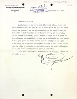 Carta de Raymond Cuxart al president del Centre de Lectura
